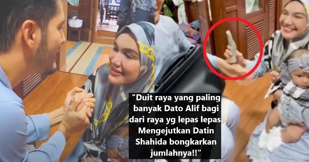 | Datin Shahida terkejut bila Dato Alif beri duit raya yang banyak pernah dapat. Tak sangka ini jumlah yang mengejutkan Datin Shahida dapat lepas berbaik dgn suaminya |